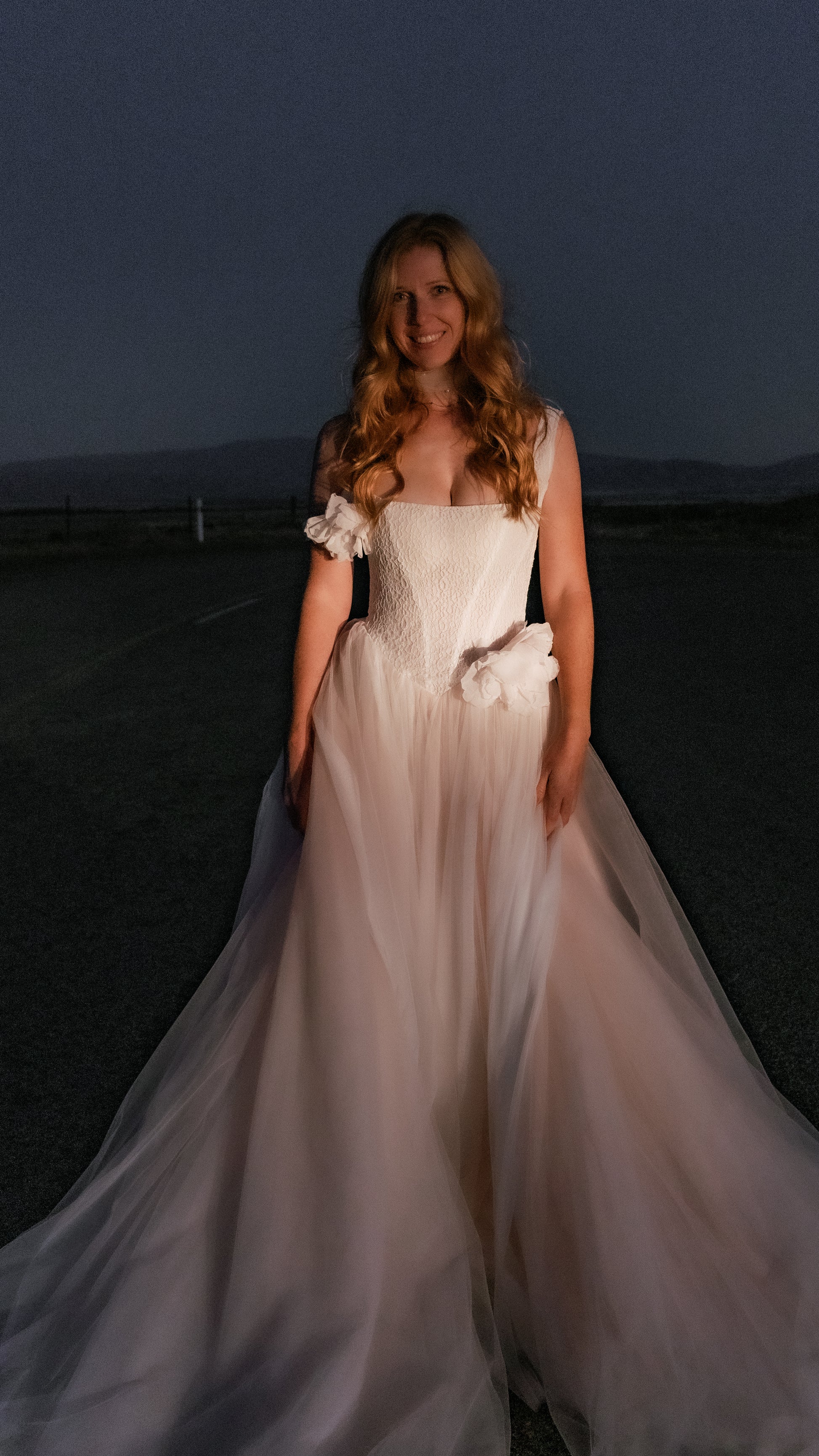 In a romantic blush pink, Chrysanthemum features a beautifully dropped corset, allowing you the freedom to wear it your way, either on or off the shoulder. The fitted bodice and structured corset are designed to flatter your figure, while the tulle skirt, blending two soft hues, flows like petals in the breeze.